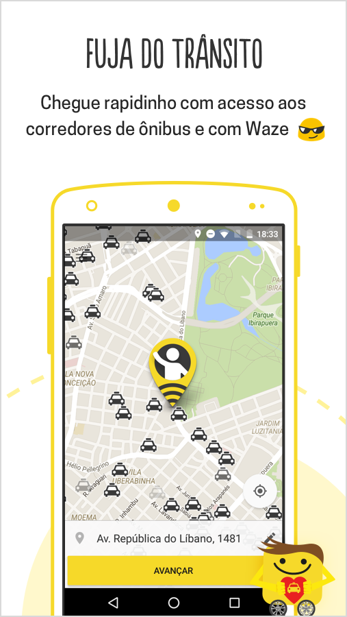 99TAXI: a opção mais rápida e mais rápida. Disponível em mais de 300 cidades em todo o Brasil, você será conduzido por um de nossos 150.000 motoristas, sempre com o nosso sorriso de orelha a orelha na cara!