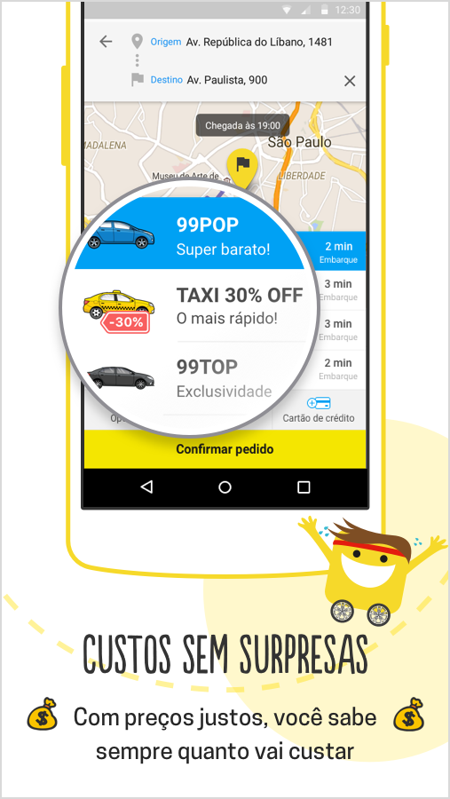 Going to work? Class? A night out with your friends? A special dinner? It doesn't matter where you want to get to, we take you there. 99 has the best and most complete transportation solutions, just for you. Our app connects you to drivers in all corners of Brazil and in just a few clicks, a car will get you wherever you are. Cool, isn't it? What are you waiting for? Try it out!